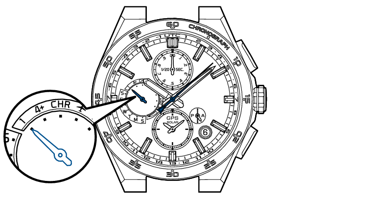 完成闰秒数据接收后,多功能指示器指针恢复显示星期(或充电状况)。腕表可以继续使用。
