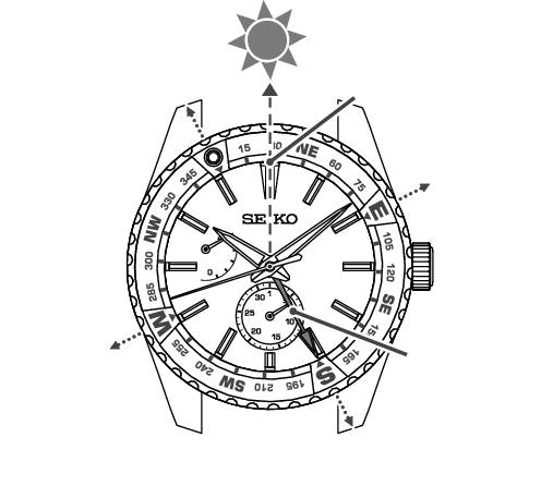 Indstil „S (syd)“ på den kompasdrejekransen (ring) til 24-timers viseren.