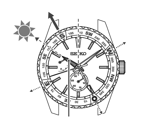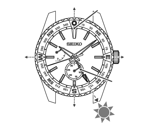 錶盤保持水平並將 12 點鐘標記指向太陽方向。