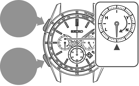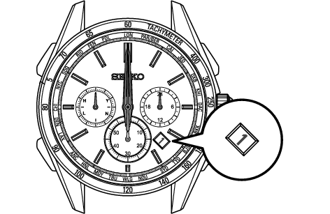 The stopwatch seconds hand will move and the watch will switch to “stopwatch seconds hand” preliminary position alignment mode.