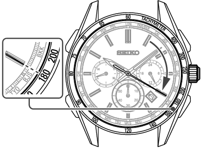 The numbers on the tachymeter scale can be read to determine how many seconds it takes to run 1 km or to measure the time required to complete 1 job.