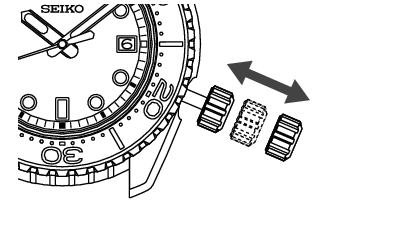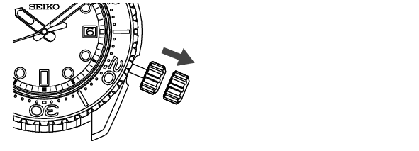 2. Tirez la couronne au second clic lorsque l’aiguille des secondes pointe vers la position 12 heures ; l’aiguille des secondes s’arrête.
