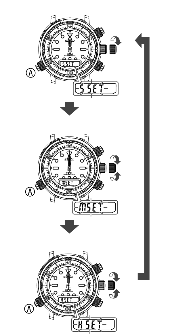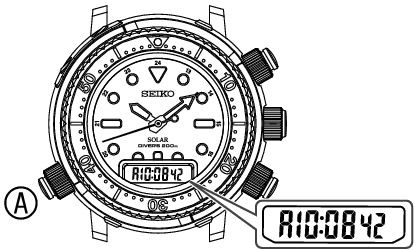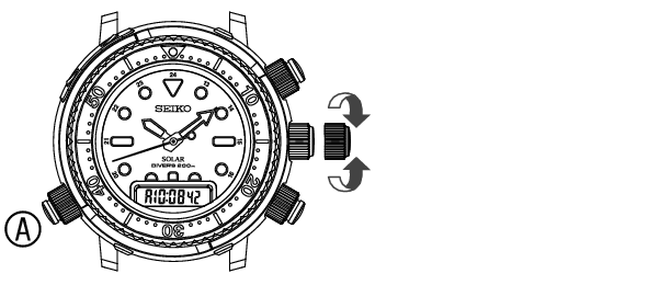Hvis du drejer kronen, mens der vises 30 til 59 sekunder på sekunddisplayet, tilføjes et minut til tiden, og det andet cifre nulstilles straks til “00”.