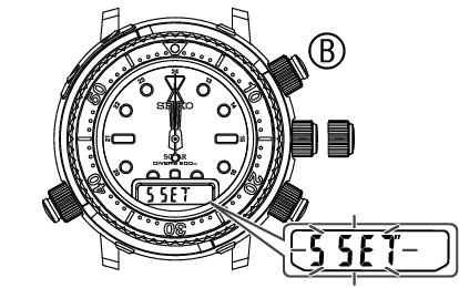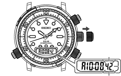 Viserne på det analoge display stopper, og “sekunder” på det digitale display begynder at blinke.