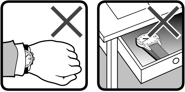Vær omhyggelig med at sikre, at uret ikke bliver varmt, når det oplades. (Driftstemperaturområdet er Mellem −10°C og +60°C.)