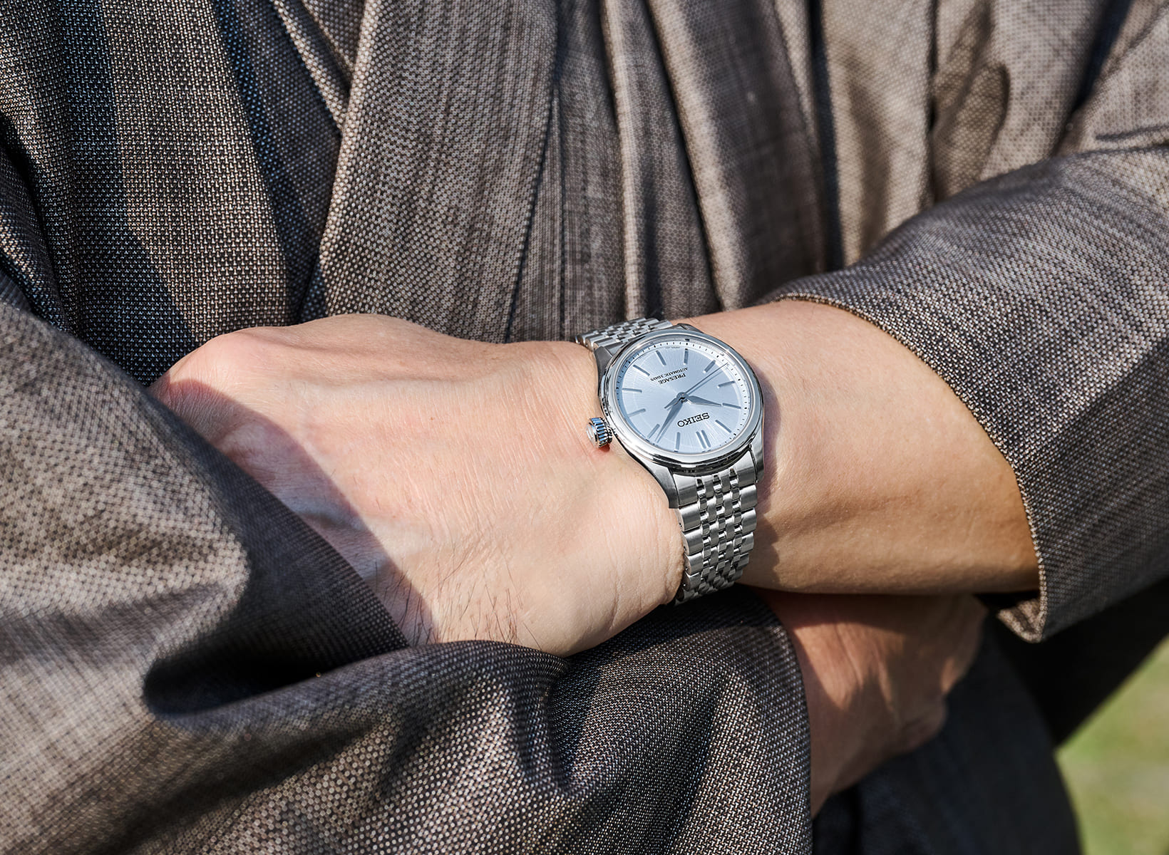 La Seiko Presage Classic Series si ispira al principio della bellezza funzionale – una bellezza estetica che nasce dall’uso pratico. Mr. Matsumoto ha spiegato che questi orologi non sono semplici oggetti decorativi e che la loro eleganza deriva proprio dalla funzionalità. I quadranti bombati, ad esempio, sono progettati per catturare la luce in modo simile alla lucentezza della seta. Persino le più piccole irregolarità nella trama radiale del quadrante sono volute, richiamando le ondulazioni naturali dei fili di seta intrecciati.