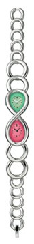モチーフの数字の「8」を、そのまま時計のケースにしたツインウオッチ(双子時計)*2です。 2つのダイヤルには、ラインで「8」を表現したグラフィカルな印刷をし、メタルのブレスレットも「8」の字が連なったようなデザインを施すなど、数字の「8」が、時計のあちらこちらに表現されているのが特徴です。