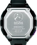 ミウラ・ドルフィンズ公認限定モデルの特別仕様として、バンドに印象的なパープルカラーのカモフラージュ柄を採用しています。また、裏ぶたには“MIURA DOLPHINS”のロゴマークが刻印されています。