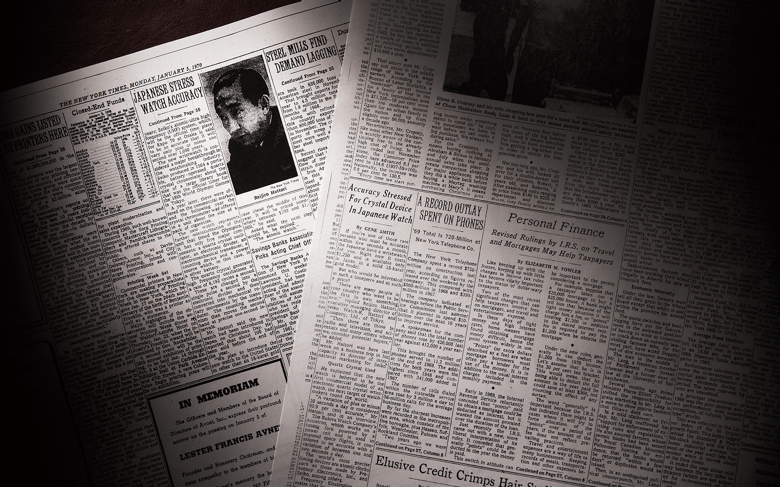 1970年1月5日付のアメリカの新聞「ニューヨーク・タイムズ」には「精度を強調する日本製時計のクリスタルデバイス」と銘打って、「セイコー クオーツ アストロン」の記事が紹介された。服部時計店の当時の社長、服部禮次郎は同紙のインタビューに対して、アメリカでも販売する予定だと回答している。