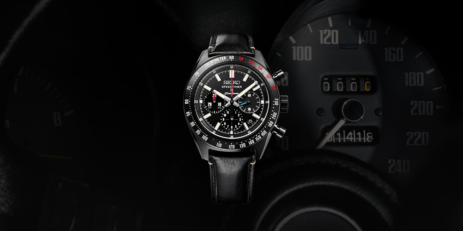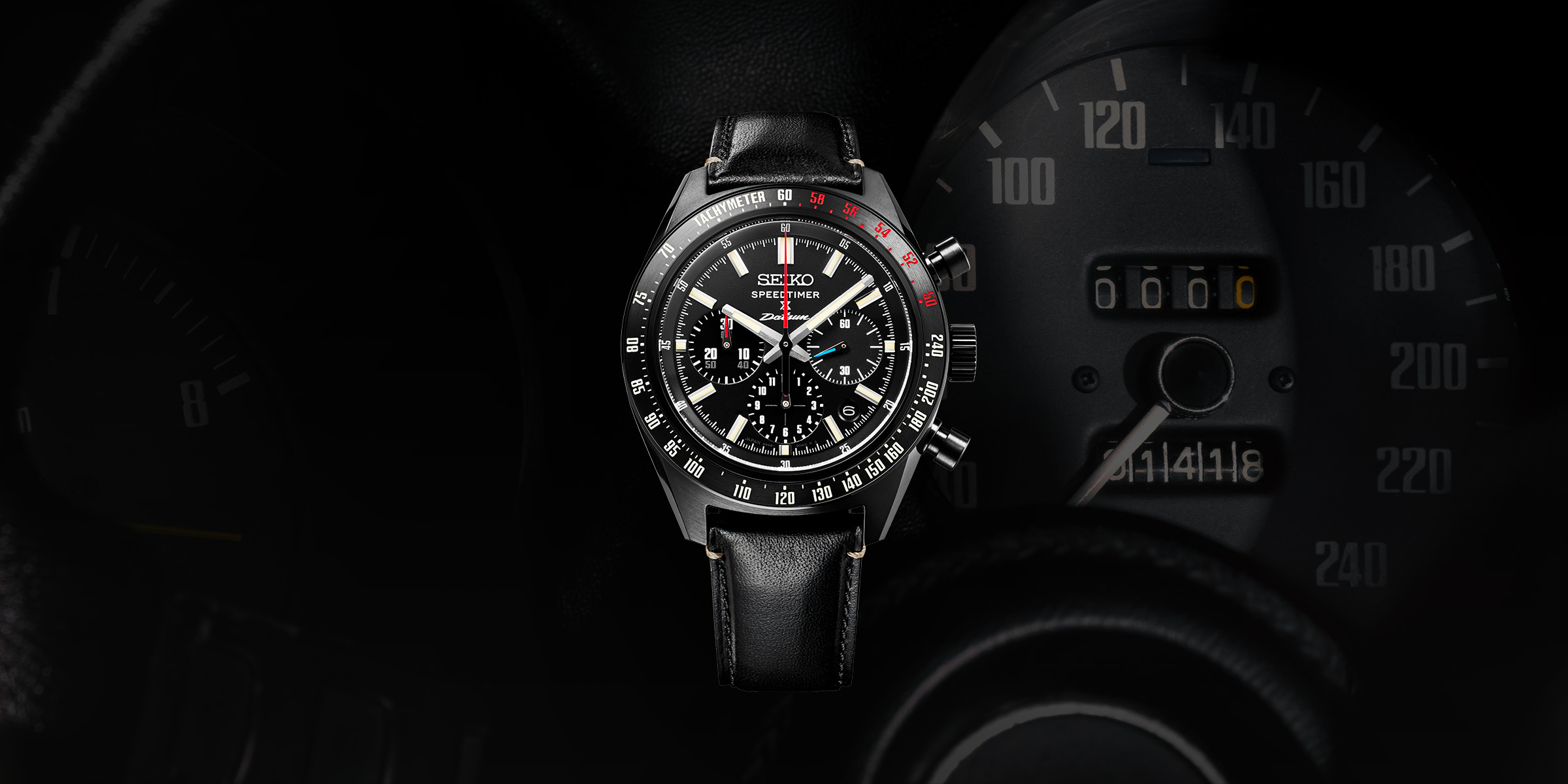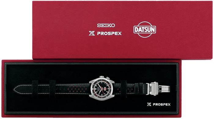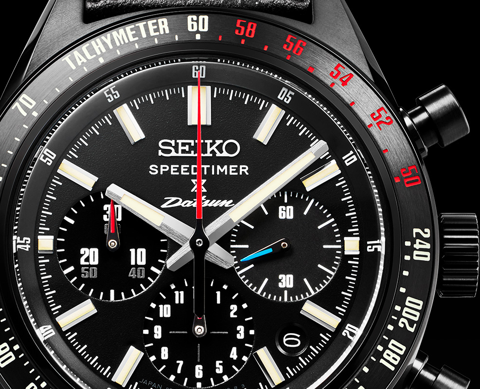 タキメーター表示やクロノグラフ積算計の目盛りなどに使用されているアラビア数字は、「ダットサン240Z」の計器盤をオマージュし、視認性を高めるとともにスポーティーな美しさを演出しています。さらに、時速50~60kmの計測結果の表示も可能なタキメータースケールは、当時のラリーカーのスピードに合わせて赤く表示分けしています。