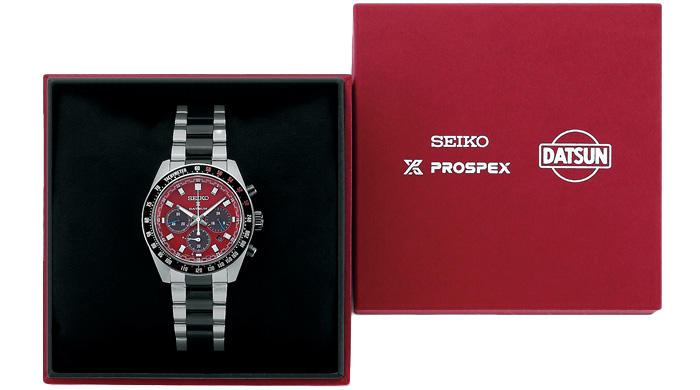 ブレスレットの中央にはブラック硬質コーティングを部分的に施し、「ダットサン240Z」のボンネットを再現しています。