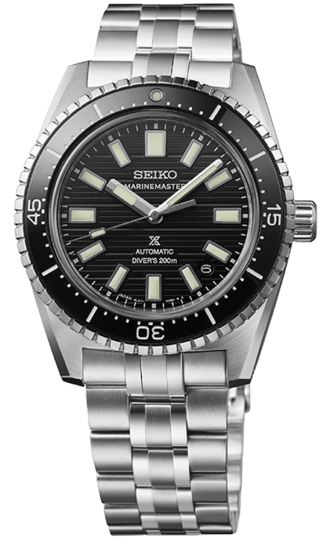1965年製ダイバーズのデザインを継承。「歴史あるデザインの中で細部をアップデートすることで、ドレッシーな雰囲気も加えた、セイコーのダイバーズウオッチのフラッグシップモデルです(木村)」。セイコー プロスペックス マリンマスター ダイバーズ 1965 ヘリテージ「SBEN007」セイコーウオッチサロン専用モデル。自動巻、SSケース、200m空気潜水用防水、ケース径39.5㎜、ケース厚12.3㎜。製品の詳細はこちら ≫
