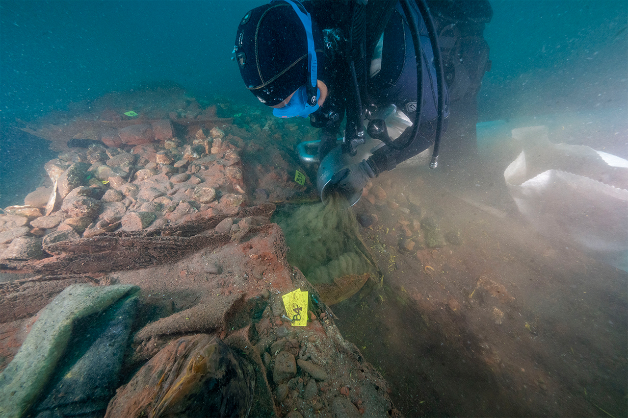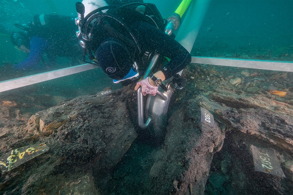 エーゲ海に浮かぶギリシャのフルニ島における2015 年~2019 年の調査で、島の周辺から歴史的に重要な意味を持つ58隻もの沈没船が発見されました。2021 年からは、特に保存状態の良い水深45m地点に沈んでいる西暦4世紀頃の難破船を重点的に調査開始。この発掘調査は、西ローマ帝国から東ローマ帝国(ビザンツ帝国)へと、地中海における西洋文明の中心地が移行した時代の海洋交易網や航海技術の発展に関する研究に役立てられます。