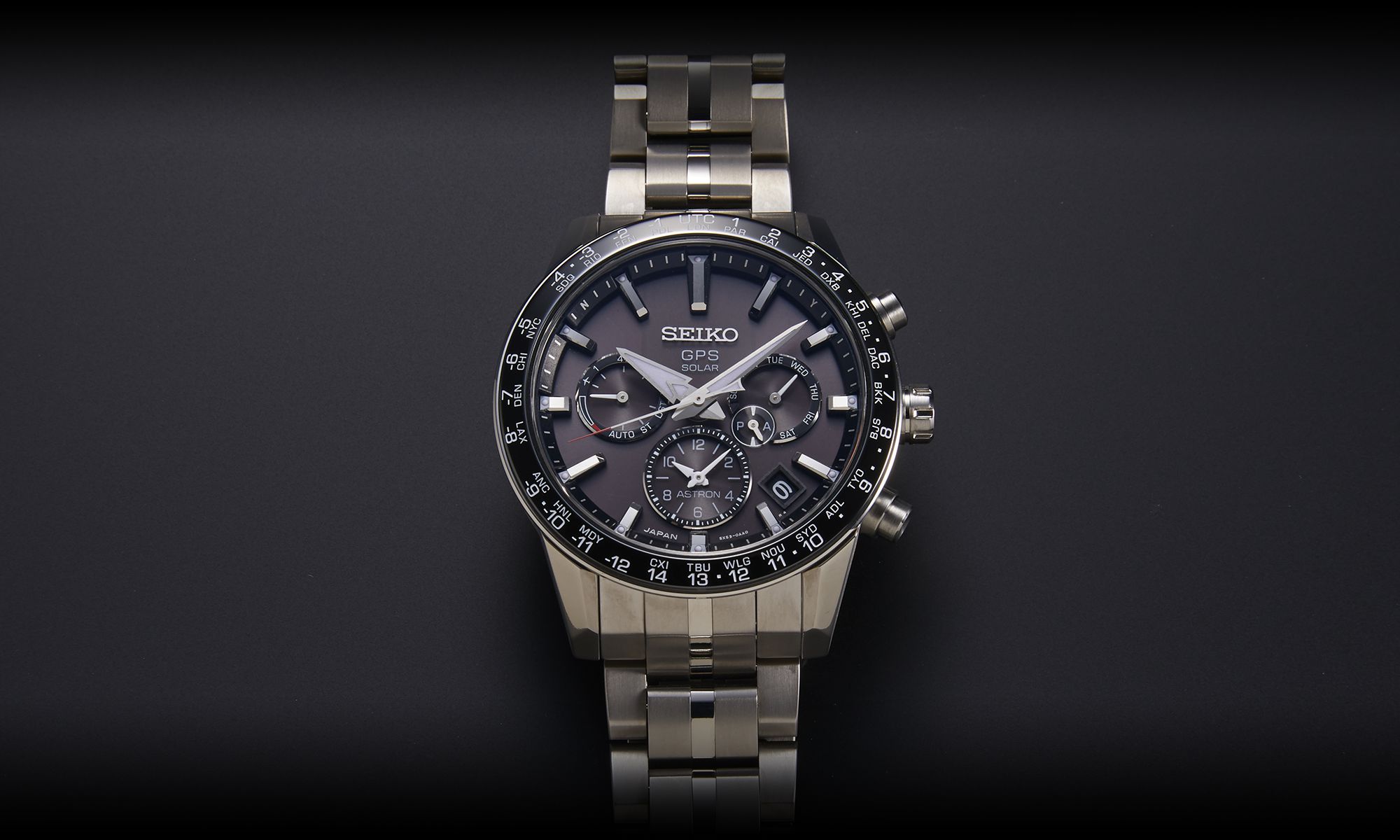 澤田明宏(以下、澤田):2012年9月に世界初のGPSソーラーウオッチとして誕生したセイコー アストロンは、地球上のどこにいても衛星からの電波を受信して、現在位置のタイムゾーンを特定し、正確な現在時刻を素早く表示します。その商品性を世界にアピールする役割を果たした「7Xシリーズ」を経て、2014年には大幅な小型化とともに、操作性の向上を実現した「8Xシリーズ」を発売しました。異なる2つの時刻帯を表示するデュアルタイム機能をはじめ、ストップウオッチ機能を搭載したクロノグラフ、ワールドタイム機能、ビッグデイトカレンダー表示など、多彩なラインアップによりユーザーのライフスタイルに寄り添うことで、国内外を問わず高い支持を獲得し、確固たる地位を築き上げてきました。
