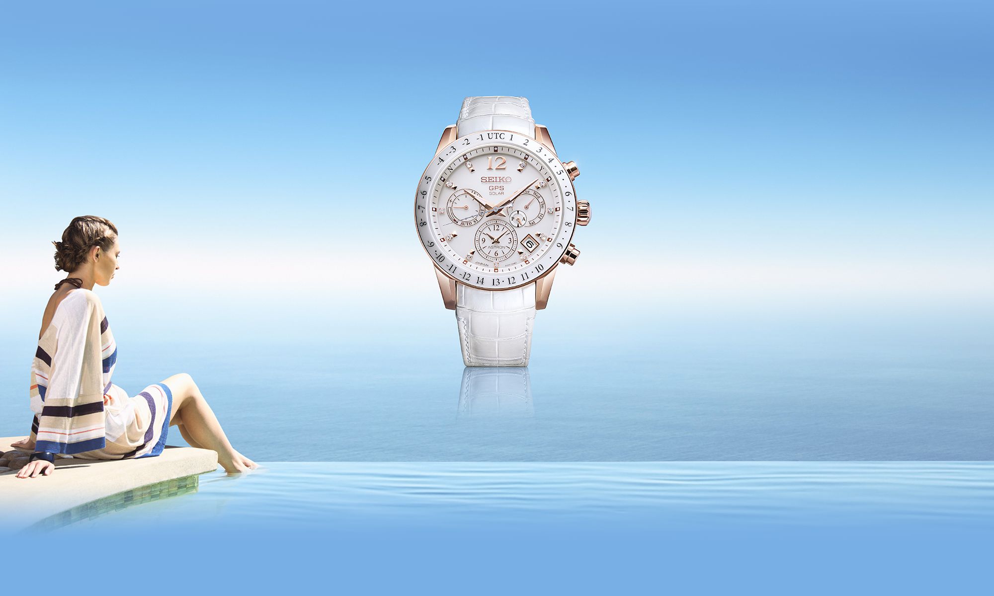 三島:リゾートシーンやラグジュアリーなシーンを想起させるカラーリングが特徴的なSBXC004は、チタンケースにはローズゴールドのダイヤシールドを採用し、11個のインデックスすべてにダイヤモンドをあしらい、女性らしい華やかさを演出しています。グローバルに活躍する女性のために生まれたGPSソーラーウオッチを多くの方につけていただけたら嬉しいですね。