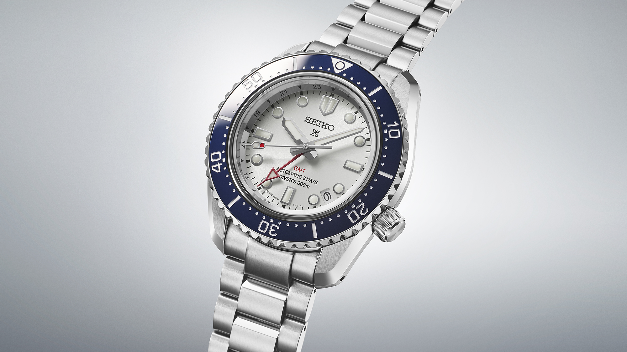マリンスポーツのあるライフスタイルをイメージしたブルーセラミックベゼルとホワイトシルバーダイヤルは、爽やかでクリーンな雰囲気を演出します。