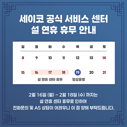 [그랜드세이코 / 세이코 강남 서비스센터 2월 휴무 안내]
