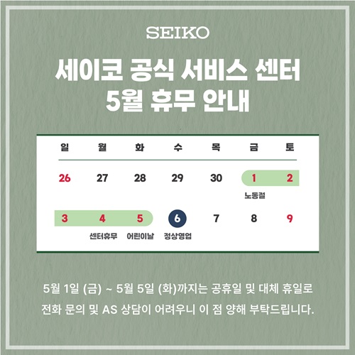 [그랜드세이코 / 세이코 강남 서비스센터 5월 휴무 안내]