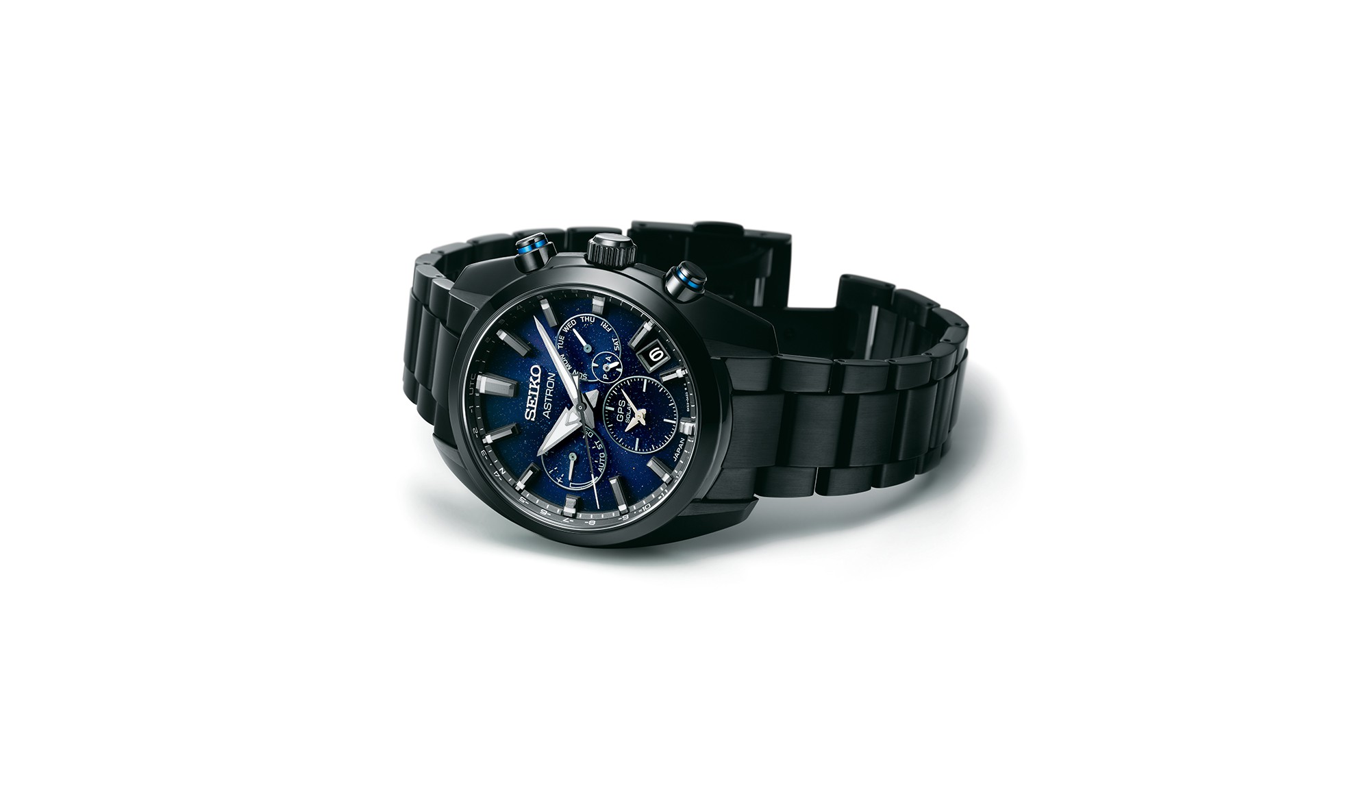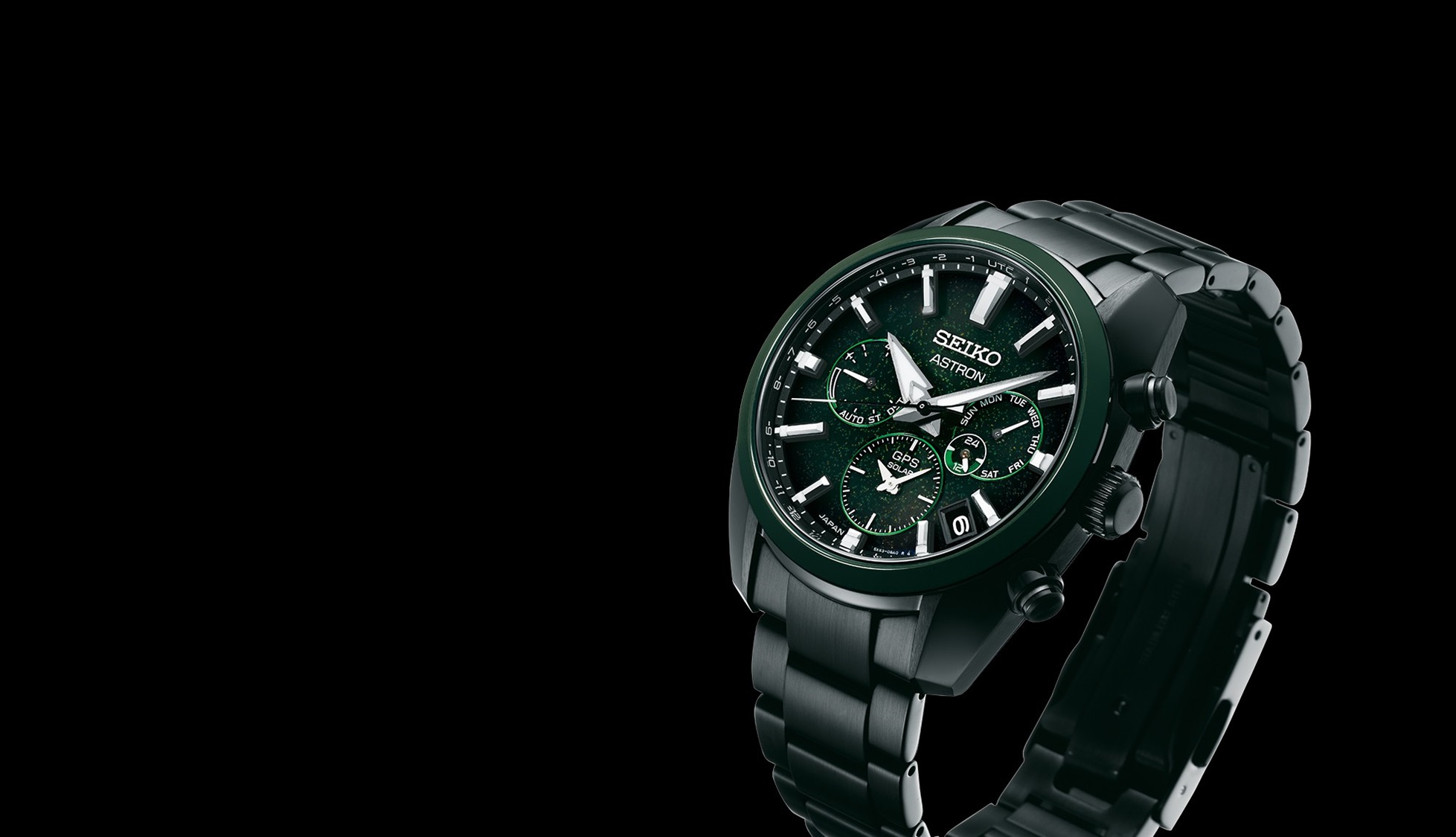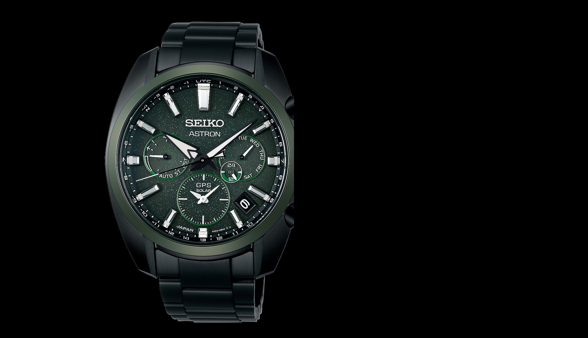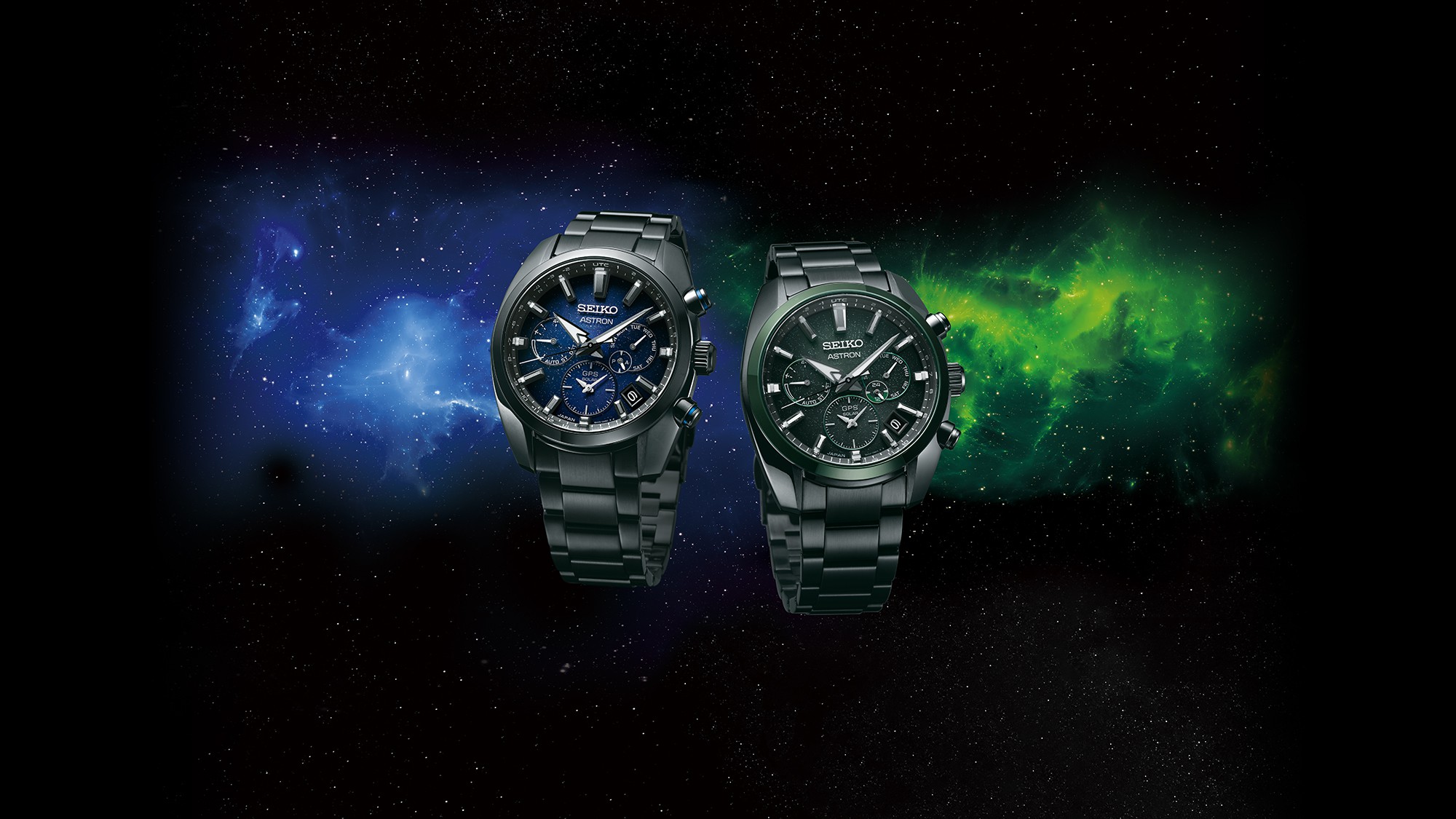 먼 우주의 성운에서 영감을 받은 블랙 케이스를 가진 두 개의 아스트론 GPS 시계