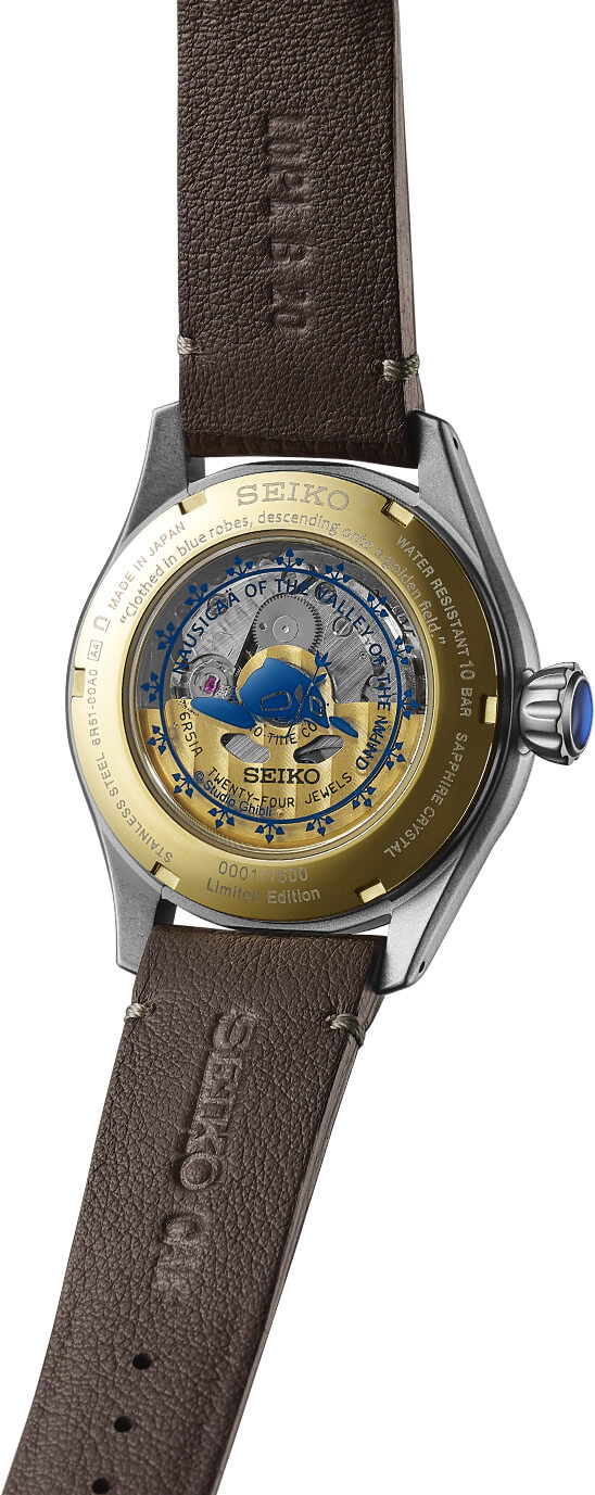 바람계곡의 나우시카 콜라보레이션 리미티드 에디션 시계에는 세이코의 새로운 무브먼트 칼리버 6R51가 탑재되어 있는데, 72시간의 파워 리저브를 제공하면서 날짜 표시창만 제외하고 모두 동일한 성능을 가지고 있습니다. 새로운 무브먼트는 무브먼트를 덮는 크래프트 다이얼의 아름다움을 강조하기 위해 개발되었습니다.