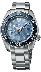Una esfera azul claro y un bisel azul más oscuro adornan una nueva recreación del emblemático reloj de buceo de 1968, que fue el primer reloj Seiko con una resistencia al agua de 300 m y un movimiento automático de 10 alternancias.