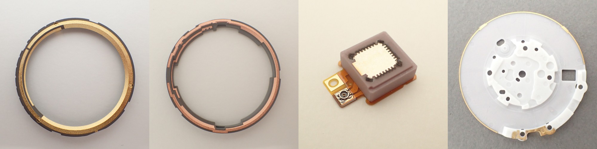 Derecha: La eliminación de la antena de anillo suavizó las limitaciones en el material del bisel, lo que permitió el uso de titanio. El contraste de la superficie de espejo y el acabado fino es excepcional.