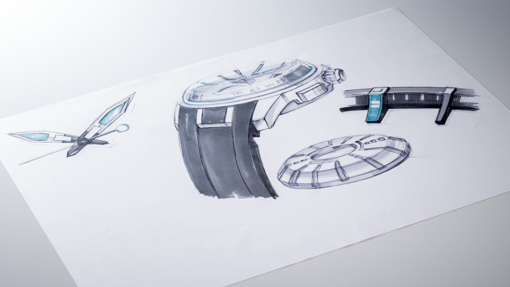 El calibre 8X fue un gran avance. Ofrecía un rendimiento mejorado y un tamaño reducido, y estos avances hicieron posible una amplia gama de nuevas posibilidades de diseño, incluidas varias esferas de color nuevas. El movimiento de nuevo diseño era un 30 % más pequeño y, sin embargo, su rendimiento de recepción y eficiencia energética mejoraron. Esto permitió la incorporación de un cronógrafo de tiempo transcurrido y la introducción de otras características nuevas. Desde una perspectiva de diseño, el calibre 8X amplió enormemente el horizonte, pero, al mismo tiempo, era necesario respetar la identidad visual establecida por la serie 7X.