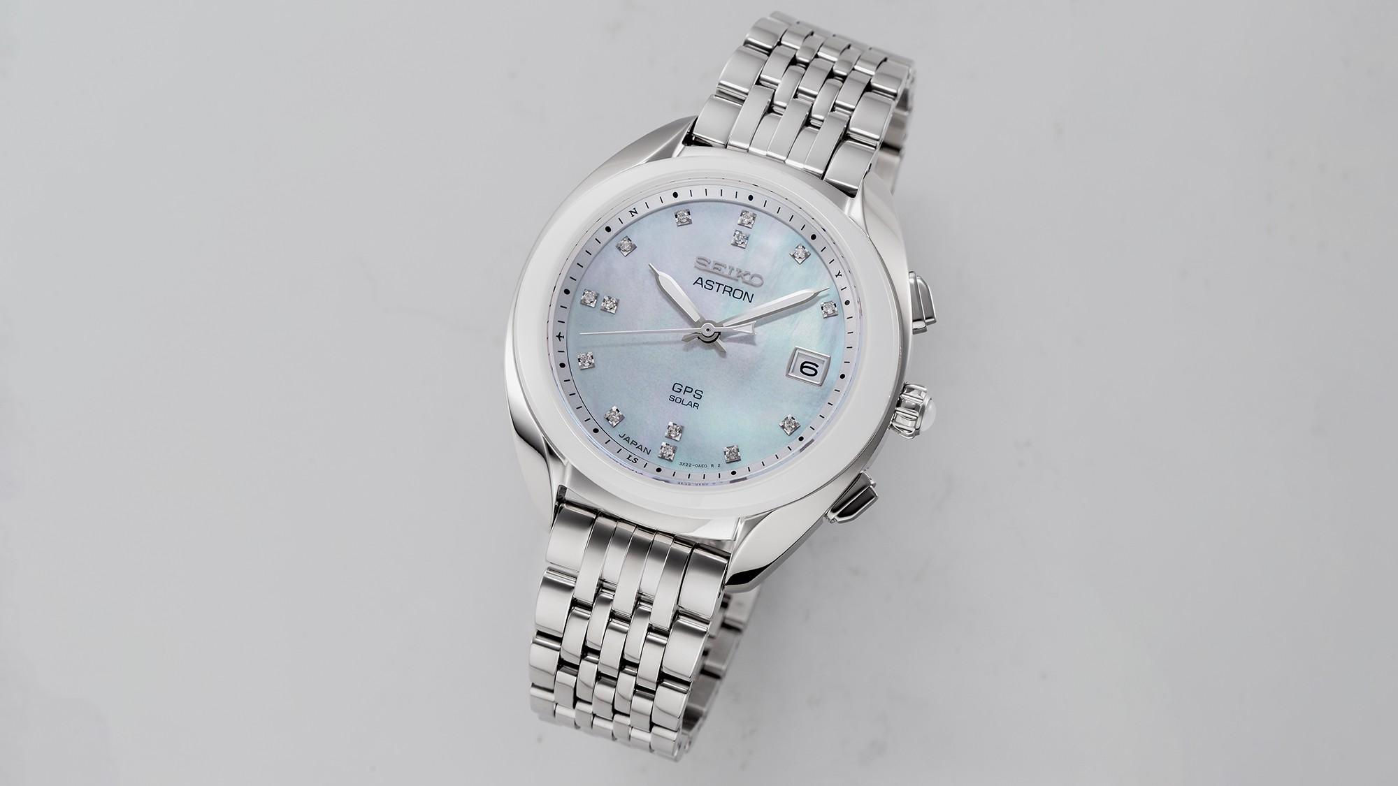Este reloj de pulsera se incorporó a la colección femenina Seiko Astron en diciembre de 2020. GPS Solar (Cal.3X22). Bisel de cerámica con caja de acero inoxidable (dimensiones 45,2 x 39,8 mm, grosor 12,9 mm). Resistencia al agua 10 bar. Brazalete de acero inoxidable.