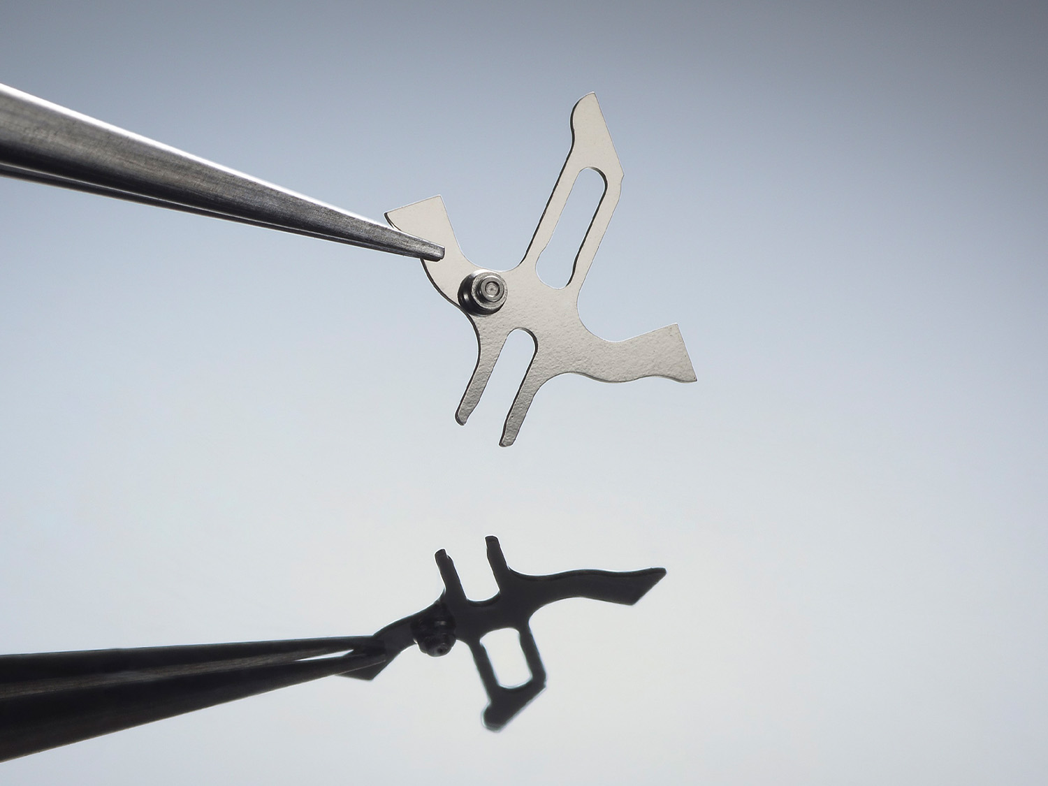 El embrague vertical elimina los saltos de las manecillas cuando se pulsa el botón de inicio/parada, mejorando la precisión y la durabilidad del cronógrafo. Al apilar los componentes uno encima de otro, el embrague vertical evita el mal acoplamiento de los engranajes que se observa en los mecanismos de embrague horizontal.