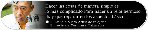 Yoshifusa Nakazawa comenzó a trabajar en Suwa Seikosha en 1978. Luego de formarse en el centro de capacitación técnica de la compañía durante tres años, se coronó campeón en la Sección de Reparación y Montaje de Relojes de las Olimpiadas Mundiales de Habilidades de 1981 celebradas en Atlanta, EE. UU. A partir de allí continuó su carrera en el área de ensamblaje de relojes de lujo. De 1991 a 1997, el Sr. Nakazawa trabajó para capacitar talentos y mejorar los procedimientos de fabricación en el extranjero. Más tarde regresó a Seiko Epson en Japón y trabajó como capataz en la línea de montaje. En 2005, el Sr. Nakazawa se unió oficialmente al Estudio Micro Artist para hacerse cargo del complejo ensamblaje de los relojes.
