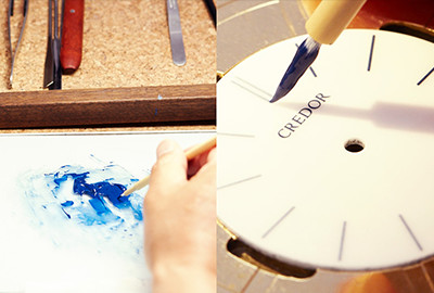 El logotipo y los números se pintan a mano para incrementar la sensación de calidez distintiva de las esferas de porcelana. El pintor residente del Estudio Micro Artist trabajó tres años con fabricantes de cerámica de renombre en todo Japón, donde recibió una formación rigurosa. El pintor cuida especialmente cada aspecto del proceso de pintura, hasta la mezcla de colores y la selección de los pinceles. Se necesitan una concentración inquebrantable y gran habilidad técnica para completar incluso una sola pieza al día.