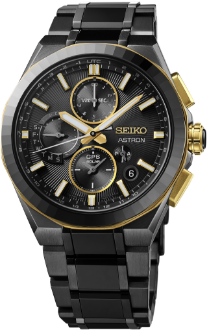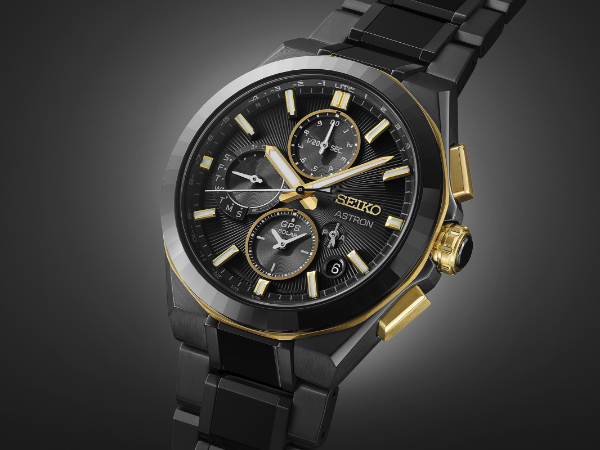 The limited edition’s all-black case and bracelet, sunray-patterned dial, and yellow-gold-colored accents evoke a view of the earth at night as seen from an orbiting satellite, an image that perfectly channels the groundbreaking technology behind Astron GPS Solar. The two-part bezel consists of a multi-faceted ceramic upper portion and a yellow-gold-colored titanium frame to create a brilliance that further evokes this shimmering night view. Ceramic is also used for the bracelet’s center links and the tip of the crown.