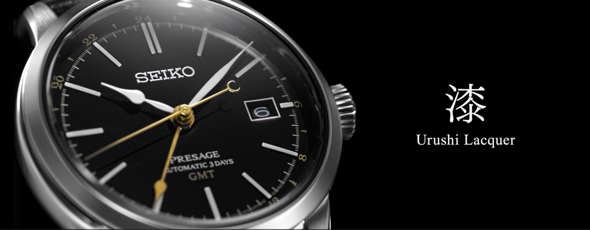 The Seiko Presage Craftsmanship Series highlights traditional skills of Japan by showcasing Japanese beauty in mechanical wristwatches. Seiko introduces a new model in the series with a glossy urushi lacquer dial and a GMT function that displays two different time zones. In doing so, the watch combines practical functionality with a dial whose depth invites repeated glances.