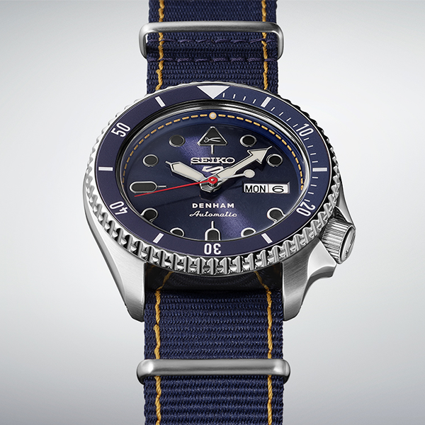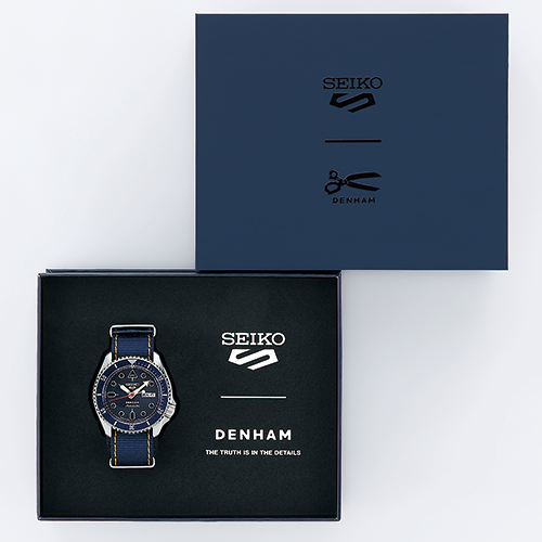 Seiko 5 Sports introduces a limited-edition watch in collaboration with premium denim brand DENHAM. Based on the SKX series, this limited edition is a fusion of DENHAM's cutting-edge design philosophy and Seiko’s watchmaking and has been created with unique specifications.