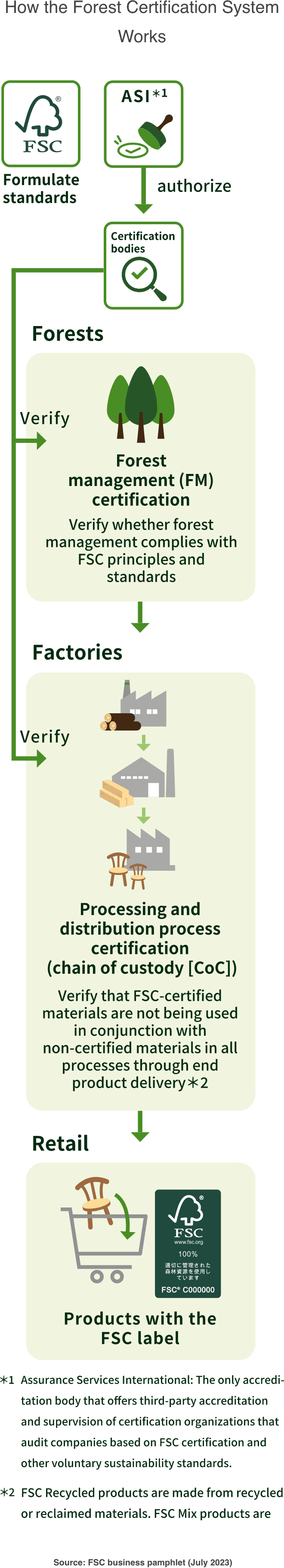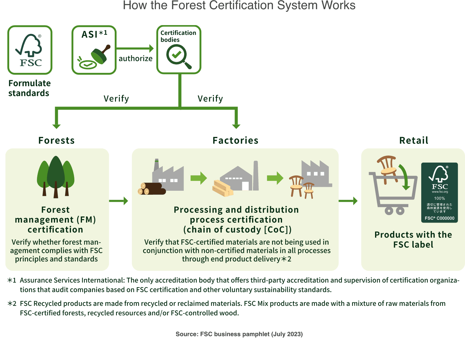 FSC-certificering is een internationaal certificeringssysteem dat is opgezet door de Forest Stewardship Council® (FSC). FSC streeft ernaar om goed zichtbaar te maken dat de aan consumenten geleverde producten zijn gemaakt van hout uit verantwoord beheerde bossen en recyclebare materialen. Om het FSC-keurmerk te verdienen, moeten alle organisaties in de keten van productie, verwerking en distributie van een product gecertificeerd zijn: van het stadium van grondstoffen tot de uiteindelijke producten. FSC-gecertificeerde producten zijn gemaakt van geverifieerd hout dat afkomstig is uit bossen die de diversiteit van bossen en de rechten van lokale gemeenschappen, inheemse volkeren en arbeiders op de juiste manier beschermen; of uit materialen die het juiste gebruik van andere bossen ondersteunen.