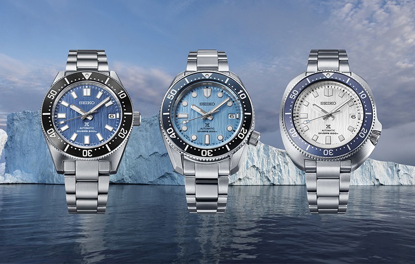 de eigentijdse herinterpretaties van drie legendarische duikershorloges uit deze bijzondere periode. Nieuwe modellen die qua ontwerp hun inspiratie putten uit de gletsjers die de pioniers ook ooit zagen en die de landschappen en zeegezichten van de Arctische en Antarctische wateren domineren. Elk