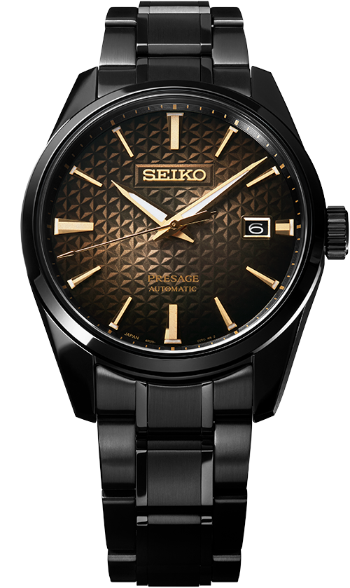 De kast en band van een Presage Sharp Edged Serie wordt gekenmerkt door de talloze platte oppervlakken met moderne, scherpe hoeken. Waar het licht ook op de kast valt, het zorgt voor een schitterend effect. De uitermate precies afgewerkte en gepolijste vlakken vormen een tijdloos contrast met de subtiele hairline afwerking en zorgen voor een prachtig multidimensionaal effect.