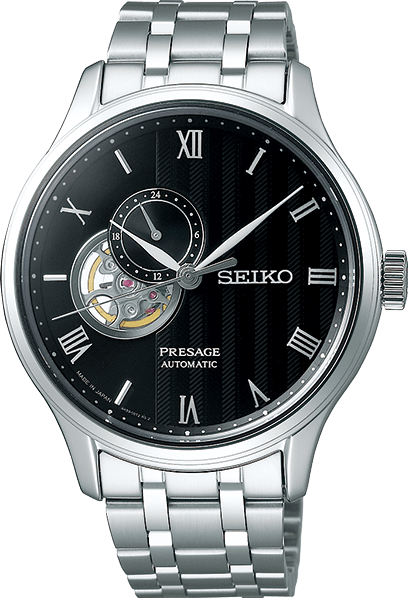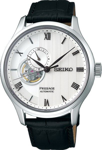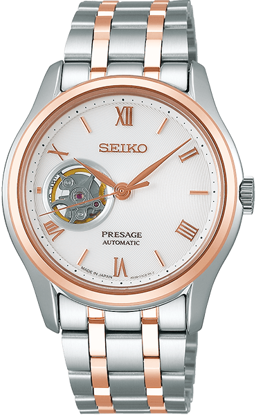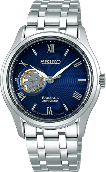 Twee modellen zijn voorzien van een 'open heart' wijzerplaat. Een zen-tuin kan het best vanaf een vast gezichtspunt buiten de tuin worden bewonderd. Deze Presage biedt dezelfde visuele sensatie als het bekijken van een perfect uitgevoerde Japanse tuin door een rond venster. De unieke vorm aan de linkerzijde van de wijzerplaat is geïnspireerd door de interactie tussen cirkels en rechte lijnen. Het 'open heart' venster in de wijzerplaat maakt de bijzondere beweging van de tijd als het ware zichtbaar en voelbaar.