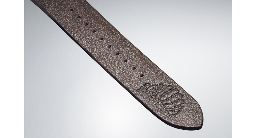 The pure blue enamel dial has been newly created to represent a blue outfit worn by the story’s heroine. The color was carefully examined and precisely adjusted during the manufacturing process to create the perfect shade of blue, a process made possible through the skill of master craftsman Mitsuru Yokosawa and his team, who specialize in enamel production. The white hour and minute hands, as well as the indexes, stand out against the blue dial to enhance legibility, while the seconds hand provides a gold-toned accent. The hour and minute hands have a rounded, leaf-like shape while the white indexes have an elongated shape, allowing the time to be read at a glance. The emblem from one of Nausicaä’s blue outfits is printed at the six o’clock position.