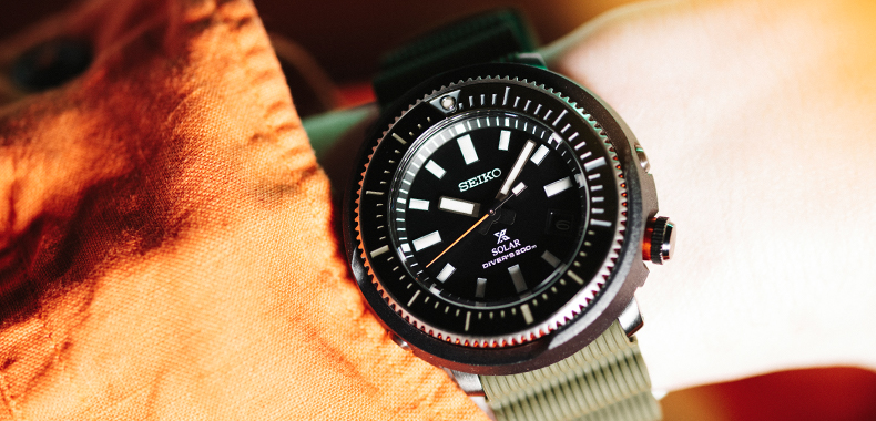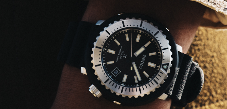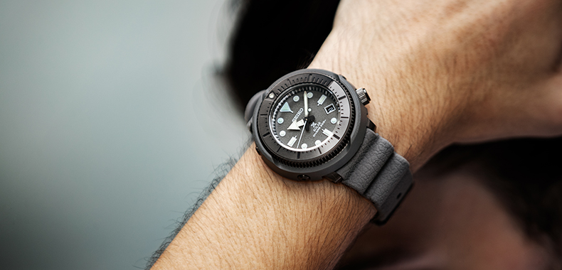 Inspired by the original 1975 Seiko diver’s, this new timepiece features the same iconic outer protector, in a more compact design perfect for urban living.