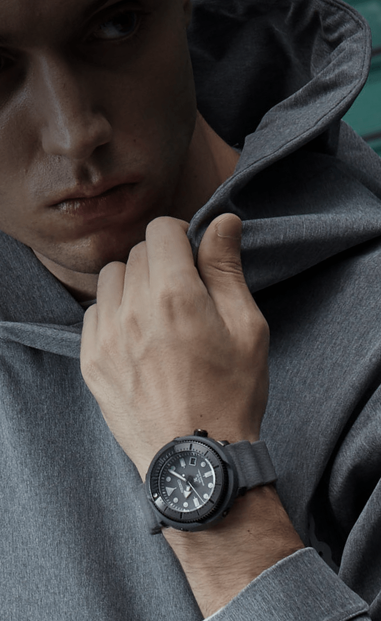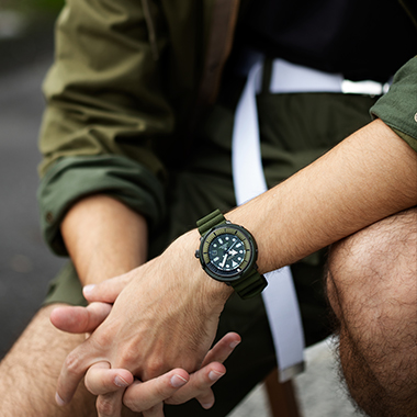 Seiko Prospex challenges every limit, with a collection of timepieces for sports lovers and adventure seekers whether in the water, in the sky or on land as professional watches, represented by diver’s watches which have gained overwhelming trust from professional divers and adventurers all over the world. While pursuing the essence of Seiko, the Prospex, Street Series applies its unique approach to the world of Prospex which is in tune with the times. The new series echoes the design of one of Seiko’s innovative professional diver’s watches, the world’s first diver’s watch with a titanium case, but it’s executed in a modern style, with a reinforced case, lightweight yet robust, to be perfectly matched with daily or town use. Using reinforced silicon bands that can withstand harsh operating environments, they are tailored in three fascinating colours.