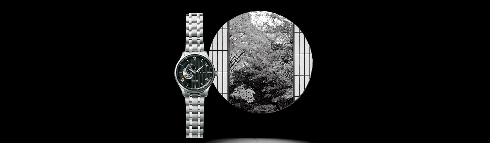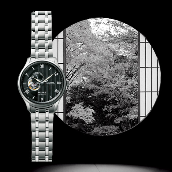 Intricate yet uncluttered, the beauty of the Japanese garden is revealed in a sand-pattern-inspired dial.