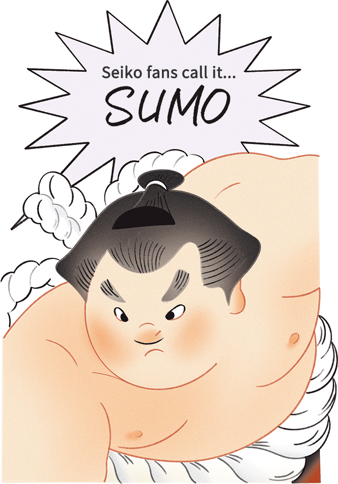 The large, solid, sturdy shape is reminiscent of a sumo wrestler, hence the nickname. The 12 o'clock index also conjures up the image of a sumo wrestler’s topknot hairstyle.