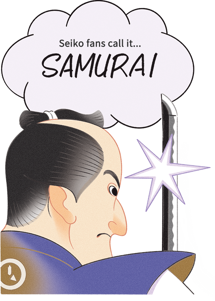 The sharp tips of the indexes and the shape of the bezel, as well as the hard, metallic texture, are reminiscent of the armor of a shogun. It is said that fans nicknamed this watch Shogun because of its strong, fearless appearance.