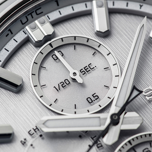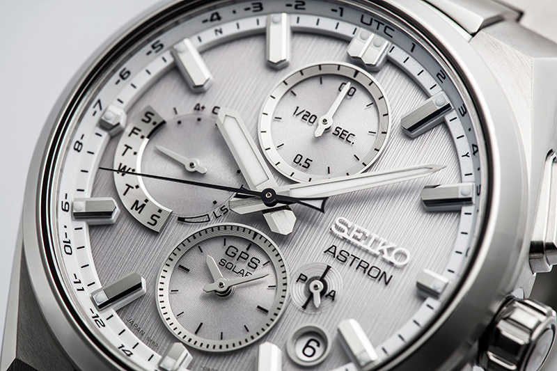 Chronograf Seiko Astron GPS Solar Dual-Time z nowym mechanizmem kaliber 5X83 nie został zaprojektowany wyłącznie z myślą o wielofunkcyjności. Uzyskanie pionowego układu z trzema mniejszymi tarczami, który wcześniej wydawał się nieosiągalny w zegarku z GPS i zasilaniem solarnym, przy jednoczesnej znaczącej poprawie konstrukcji, w tym faktury tarczy, jest arcydziełem, które przenosi zegarek GPS solar na wyższy poziom.