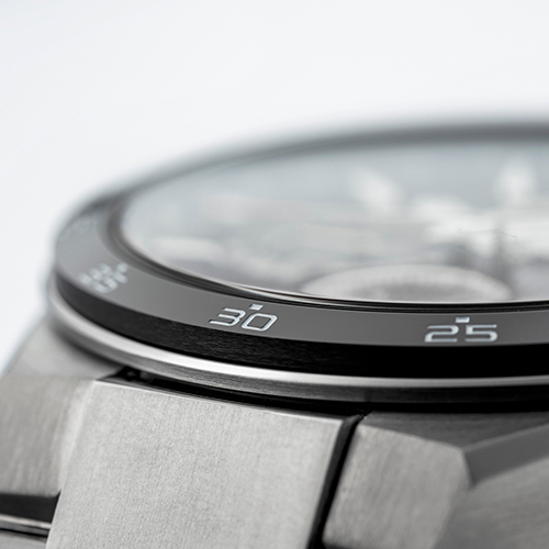 Zegarek Seiko Astron GPS Solar Dual-Time Chronograph trafił na rynek wiosną 2024 roku jako model z ceramicznym bezelem, a w listopadzie pojawił się drugi model z tytanowym bezelem. Ponieważ na etapie projektowania mechanizmu zdecydowano się na hybrydowe rozwiązanie łączące antenę płaską z anteną dielektryczną, rozważano już zastosowanie bezela z jednego lub drugiego materiału. Jednak zewnętrzny design wymagał ponownego przemyślenia. Dzieje się tak, ponieważ ceramika i tytan różnią się właściwościami materiałowymi, przez co ich walory estetyczne dają różne efekty.