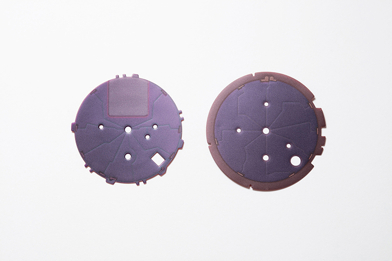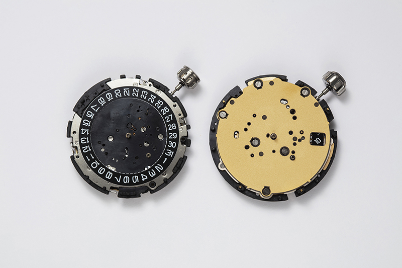 Po lewej stronie widoczne jest ogniwo solarne zastosowane w kalibrze 5X53. Porównanie go z ogniwem solarnym z kalibru 5X83 (po prawej) wyraźnie pokazuje, że konieczność umieszczenia anteny na wysokości godziny 12 ogranicza nie tylko jej wielofunkcyjność, ale także wygląd tarczy. Ponieważ sygnały GPS są blokowane przez obszar generowania energii ogniwa solarnego, kaliber 5X53 został zaprojektowany tak, aby nie generować energii w przestrzeni anteny znajdującej się na wysokości godziny 12. W przypadku kalibru 5X83 przejście na płaską antenę umożliwiło zwiększenie obszaru generowania energii przez ogniwo solarne, co przełożyło się na poprawę wydajności ładowania. W modelu z czarną tarczą kaliber 5X83 zastosowano niebieskie ogniwo solarne, aby uzyskać głębszą czerń i podkreślić ciemnoniebieski odcień.