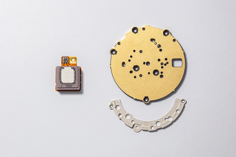 Po lewej stronie pokazano antenę typu patch zastosowaną w kalibrze 5X53. Kaliber 5X83 uwolnił przestrzeń dla mechanizmu dzięki zastosowaniu płaskiej anteny, jak pokazano po prawej stronie, co pozwoliło na dodanie jeszcze jednego silnika. Ponieważ jednak sygnały GPS są odbierane z obrzeża zegarka, z płaską anteną można stosować wyłącznie ceramiczny bezel. Antena dielektryczna widoczna w prawym dolnym rogu została użyta w celu poprawy jakości odbioru sygnału. Jego zadaniem jest przekierowanie kierunkowości na tarczę, co pozwala na zastosowanie metalowego bezela.