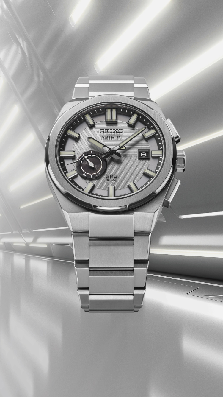Pierścień o dwuwarstwowej konstrukcji łączy różne metale. Koperta, bransoleta i tarcza są zaprojektowane w jednolitym srebrnym odcieniu, tworząc metaliczną atmosferę wnętrza statku kosmicznego.