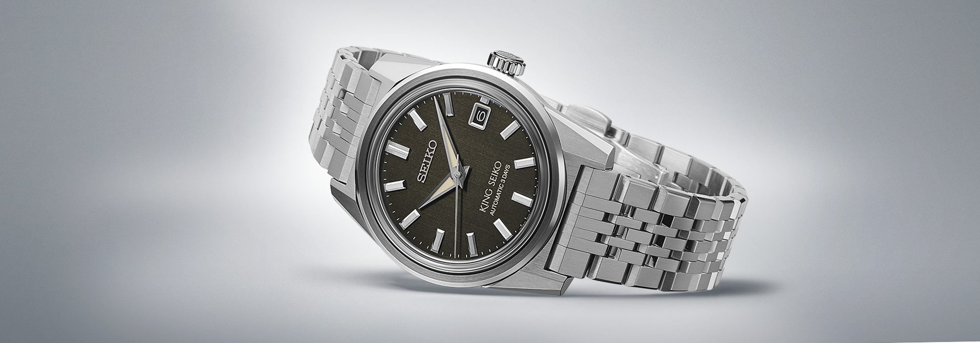 Tarcza inspirowana jest kulturą lat 60. i 70. XX wieku, kiedy to zegarek King Seiko przeżywał swój prawdziwy rozkwit. Dostępna jest ona w trzech kolorach: czarnym grafitowym, niebieskim indygo i oliwkowo-zielonym. Pionowe wykończenie tarczy szczotkowaną linią podkreśla jej retro look.